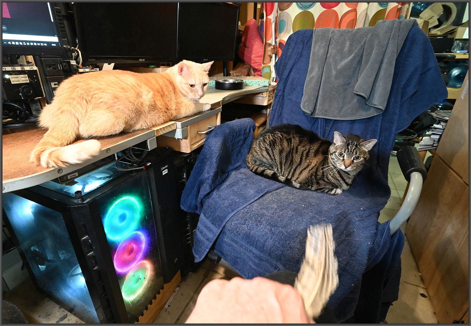 Brane Klezmer Tmei! The Crew hanging out with me at 0315 MST. Li'l Feller would not face the camera so I brought out my secret weapon: a guinea hen feather.