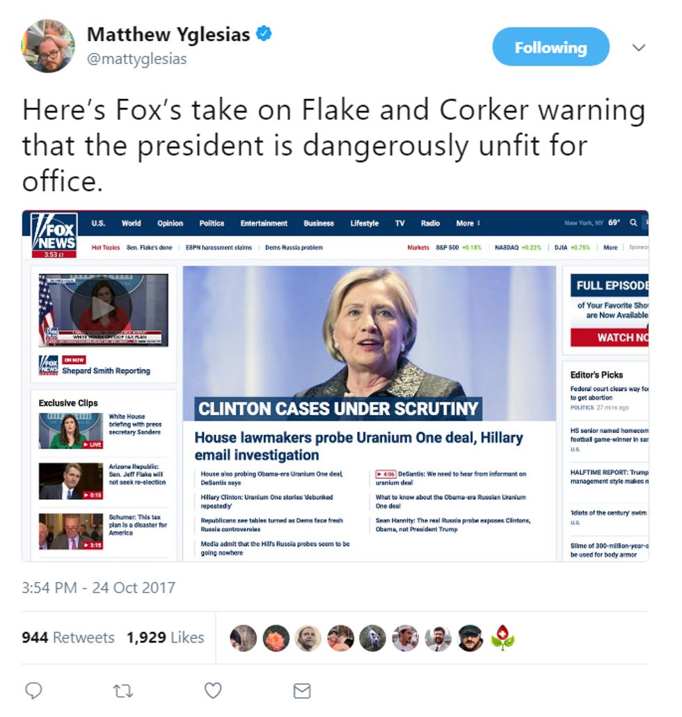 Now, the actual news on Tuesday was that Senator Bob Corker started the day calling Trump an unhinged, lying cum sock (and one million other mean things) and Senator Jeff Flake ended the day by announcing that, because Donald Trump is a stupid, rude troll baby from the most incompetent ring of hell, he's retiring at the end of his term. This way he can spend the next 18 months taking a shit on Trump without worrying about re-election. (Yes, #HotTakers, he will probably still vote for a lot of bad things! Flake didn't announce he was going to stop being a conservative, kids.)