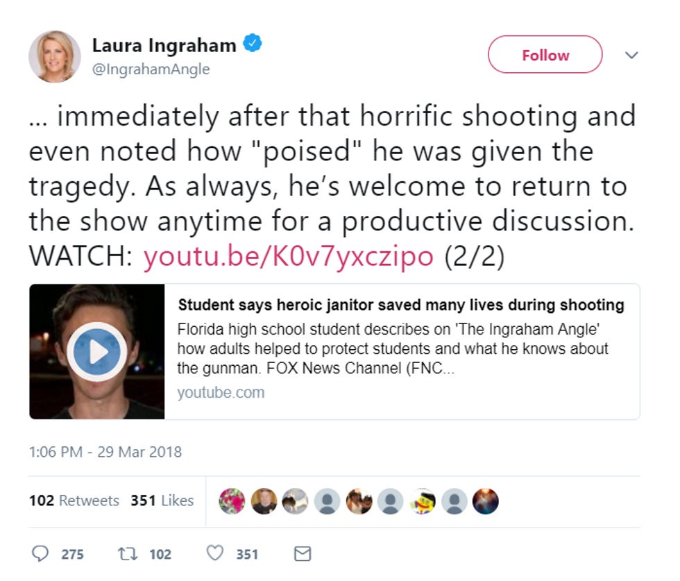This morning, we told you about how Laura Ingraham is a loud-mouthed fucking ass stain (edge of your seat breaking news right there) who needs to shut the fuck up about the Parkland students. We know, it's literally killing gun-humping conservatives right now that common decency says they shouldn't attack minor children who just survived a mass school shooting, but oh well, life is just tough like that sometimes.