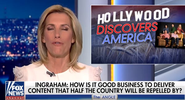 Dunno, Laura Ingraham, why DO YOU deliver such shitty content? Also, your 'content' is repulsive to WAY more than half the country. Also, if you're curious how long it takes to get a screengrab of Laura Ingraham with that shitty of a look on her face, the answer is VERY FEW SECONDS.