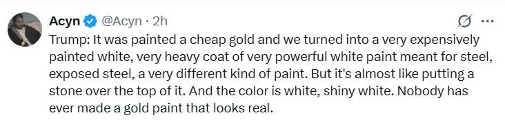 Please. We’ve all seen what Trump did to the Oval Office. The man has never seen a cheap gold he wouldn’t slap on every inch of wall space until the entire room looks like King Midas had a seizure. Our long national taste nightmare goes on.