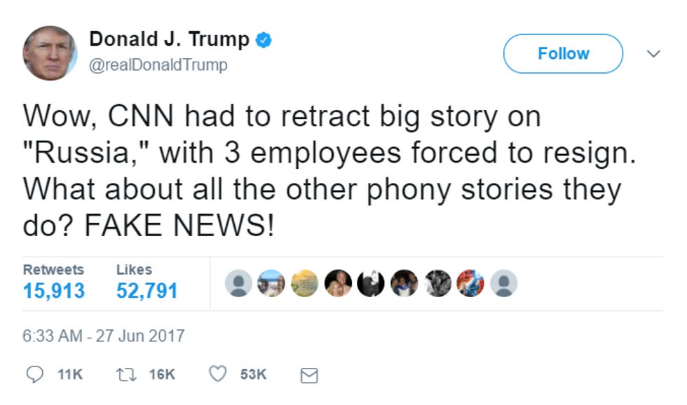 According to the WaPo, this isn't the first story he's fucked up during his short tenure at CNN either. His byline was on a story before the James Comey testimony about how Comey would definitely probably for sure say he never told Trump he wasn't under investigation. As we all know, that's not what Comey said AT ALL.