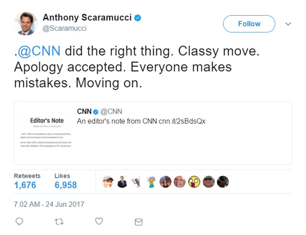 Anthony Scaramucci reacted to the retraction like a normal person: