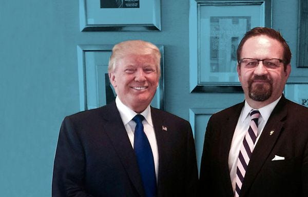 (Now seems a good time to note that Sebastian Gorka is definitely not a Nazi even though he wears Nazi medals to balls and Nazi groups claim him as a member and he went on TV and talked about how great were these "anti-Semitic violent militias." It would be unfair to take that sort of thing out of context because truly who among us has not looked at our jewels and trinkets while dressing for a ball and thought "I think I will wear the Nazi pin," and also the TV thing, for wholly non-Nazi reasons?)