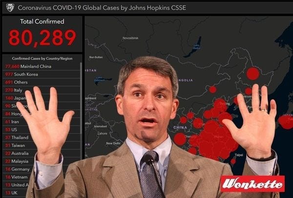 Just to reinforce Trump's insistence that all is well, (acting) Deputy Secretary of Homeland Security Ken Cuccinelli, AKA perennial Wonkette favorite Saint Cooch Nobortions, a member of Trump's coronavirus task force -- really -- took to Twitter to ask why he couldn't see a non-governmental website about the outbreak.