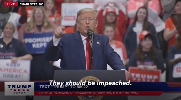 TRUMP: OK! Quid pro quo. Quid pro quo! They made a deal! IMPEACH THEM! They should be impeached! They should be impeached! Quid pro quo!
