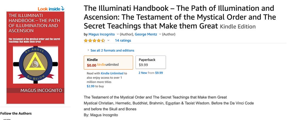 Several of the books on Mentz's author page actually show someone named "Magus Incognito" as the author on the cover of the actual book, with Mentz listed as a co-author. And vice versa! There are books with Mentz's name on the cover, with Magus Incognito listed as a co-author.