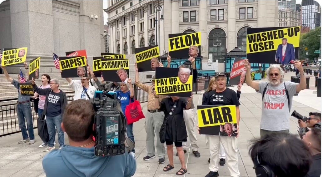 On Friday, while his son Barron was starting his first week of college over at NYU, probably taking Gender Studies classes in between smoking jays with the Naughty Knitters Club, his daddy was a few blocks downtown, trying to weasel out of his $5 million sexual assault judgment in the E. Jean Carroll defamation case.