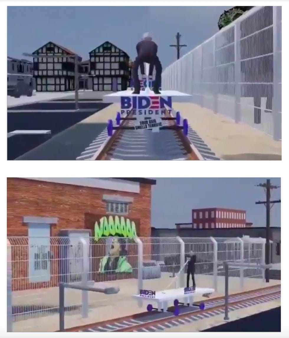 See Trump is a BIG CHOO CHOO TRAIN VROOM, and Biden is just a skinny dude manually pumping himself along the tracks.