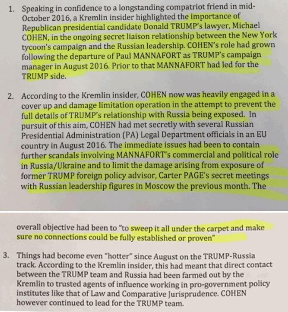 Here are a few more juicy nuggets from the Steele Dossier about Michael Cohen, some of which the House and Senate intel committees (not to mention special prosecutor Robert Mueller!) might be interested in sussing out the full truth about: