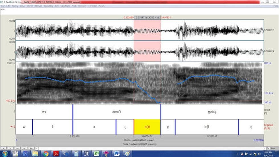 Alan Yu, a linguistics professor at the University of Chicago who specializes in phonology, ran the audio through a computer program called Praat, which analyzes phonetics.