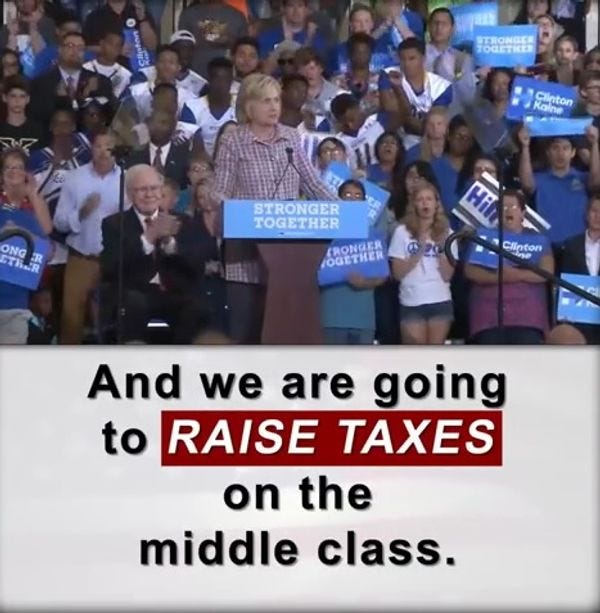 Needless to say, Hillary's "promise to raise taxes on the middle class" is already permanently cemented in the rightwing imagination, right along with that time Barack Obama "admitted" he was a Muslim.