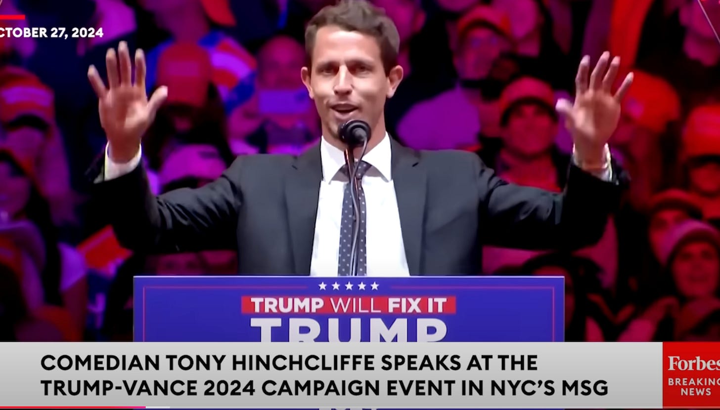 After Donald Trump’s Nazi rally on Sunday at Madison Square Garden, and after the backlash to the vile, racist jokes from human zero Tony Hinchcliffe really got started, the Trump campaign started protesting that the “joke does not reflect the views of President Trump or the campaign.” (You know, because they’re only really being forced to disavow the joke about Puerto Rico being an island of floating garbage, and not the one about Latinos pulling out or Black people carving watermelons for Halloween.)
