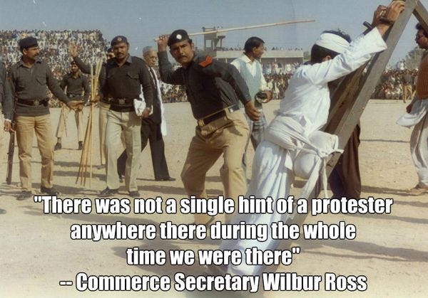 Wilbur Ross touts the lack of protests in Saudi Arabia during Trump's visit (maybe it's because protesters are jailed & sometimes beheaded?) pic.twitter.com/DQIENgtopz