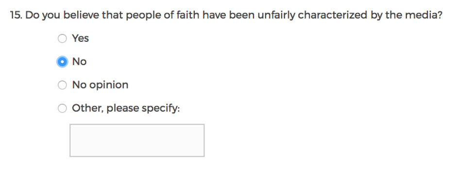 Again -- which media? "The Media" is not a monolith. It includes reported journalism, opinion journalism, talk radio, talk shows, music, art, entertainment, etc. etc. It includes practically everything, all kinds of people, all kinds of opinions. Some of which include positive representations of "people of faith" (Christians, they're really just talking about Christians here), and some of which include negative representations.