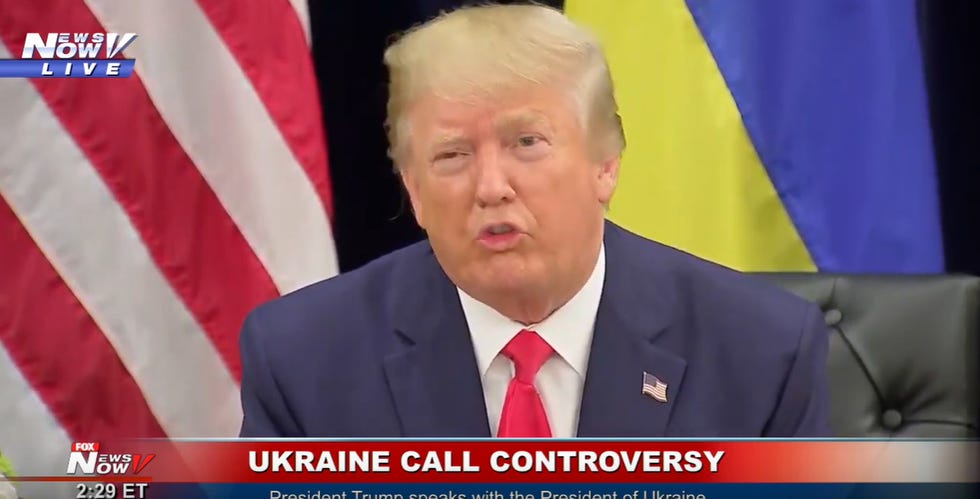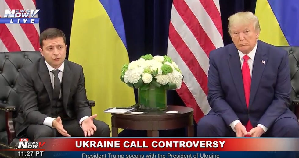 Trump, from the beginning, kept telling Zelenskiy to "stop corruption," which we all know is code for "investigate Joe Biden," telling him it will be just "tremendous" for the nation of Ukraine. But it really went off the rails when reporters started asking questions. We will paraphrase, except for when we use quotation marks, which are the international symbol for direct quotes: