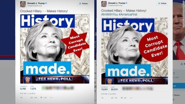 First they were all like "nah." Then it was the media. (DRINK!) Then they wereall like "wasn't us, we just 'lifted' the tweet in question from a guy, he's this guy, you don't know him or his 'countless' images of Hillary Clinton on a swastika."