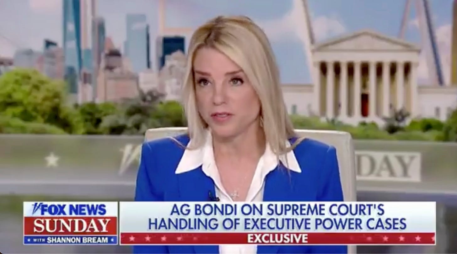 (By the way, Bondi is straight-up lying there that Trans Ban Pete won his “military readiness”/Talbott v. United States argument in ANY court, as every single judge that has seen that pile o’crap has poop-scooped it, and the military is not allowed to discharge any people for being trans, as of now.)