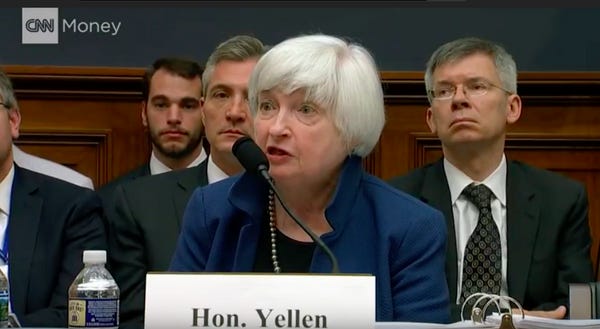 Let's turn our attention, though, to one relatively minor item in the interview that shouldn't be overlooked because of all the much bigger and scarier crazy surrounding it. (Check back later for that!) Trump is not happy with Jerome Powell, his non-economist pick to head the Federal Reserve. True to form for this buck-stops-elsewhere president, Trump feels Powell was foisted on him. His advisers had steered him away from renominating Obama appointee Janet Yellen, the first woman to hold the position. She'd impressed Trump in an interview, but he was concerned she was "too short" for the job. Yes, you just read those words.