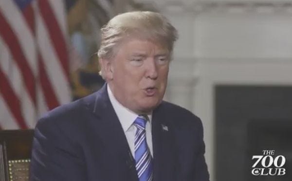 Also, too, during a hard-hitting interview with superannuated televangelist Pat Robertson, Trump explained that he'd be really angry, and a lot of people would be very disappointed, if the Senate doesn't pass this thing, whatever it is. Just look at his mastery of detail!