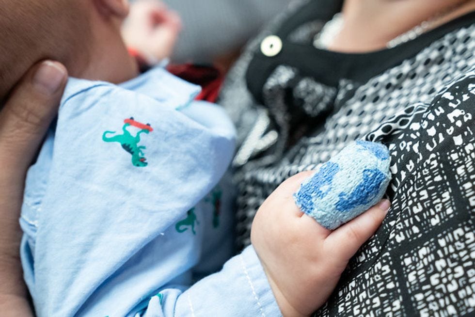 The White House photographer was careful to get a close-up of the little baby's injured hand, even, along with another photo of Melon looking at the injured baby with great concern.