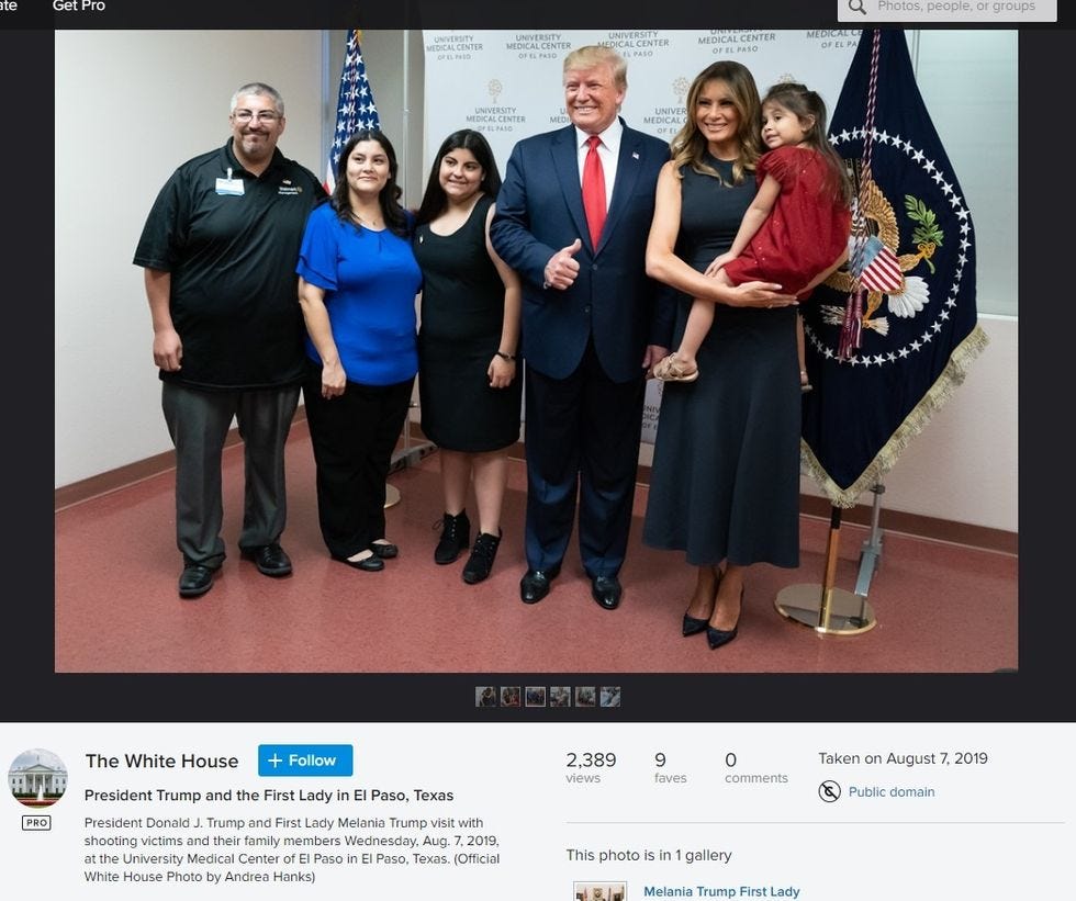 We already knew that none of the eight victims still recovering at University Medical Center of El Paso met with the Trumps -- some were too badly injured, some speak only the Español, and others just said nah -- to the . But we learned more about one of the two survivors rounded up and brought back to the damn hospital so they could be in Trump's photo op. Not that it was a photo op, because White House Press Secretary Stephanie Grisham made it clear the hospital visits were "about the victims and their families, and thanking medical staff" and definitely not "about a photo-op for the President and the First Lady."