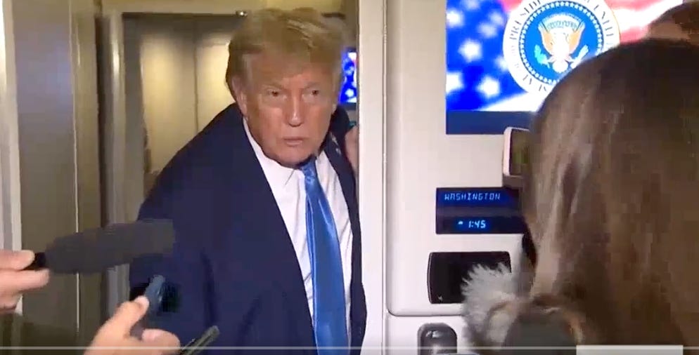 Looking like absolute worn-out shit on Air Force One, he told reporters he won’t be calling Minnesota Governor Tim Walz to offer condolences.