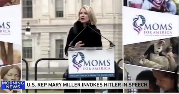 Redistricting has left Rep. Mary Miller from Illinois without a seat. This is a blow to Hitler fans everywhere, as Miller grossly stated in prepared remarks last year: “Hitler was right about one thing. He said whoever has the youth has the future.” She didn’t have to quote a genocidal maniac to make her point. She could’vereferenced Whitney Houston, who believed that children are our future.