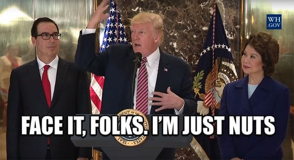 Trump (Excuse Me! Excuse Me!) Perfectly Sane. Wonkagenda for Wed., Aug. 16, 2017
