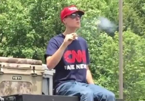 The video got a warm mention from Pizzagate idiot Jack Posobiec and also from the influential Total Frat Forum, so you know it's good. Also, it has jump cuts and ends with Mintyboy "rolling coal" in the great big truck, which the video's description mentions he borrowed from a friend.