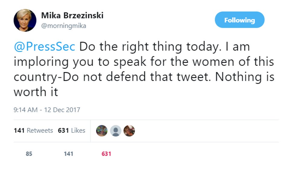 And in case Press Secretary Poot Lips didn't hear her, Brzezinski doubled down on Twitter: