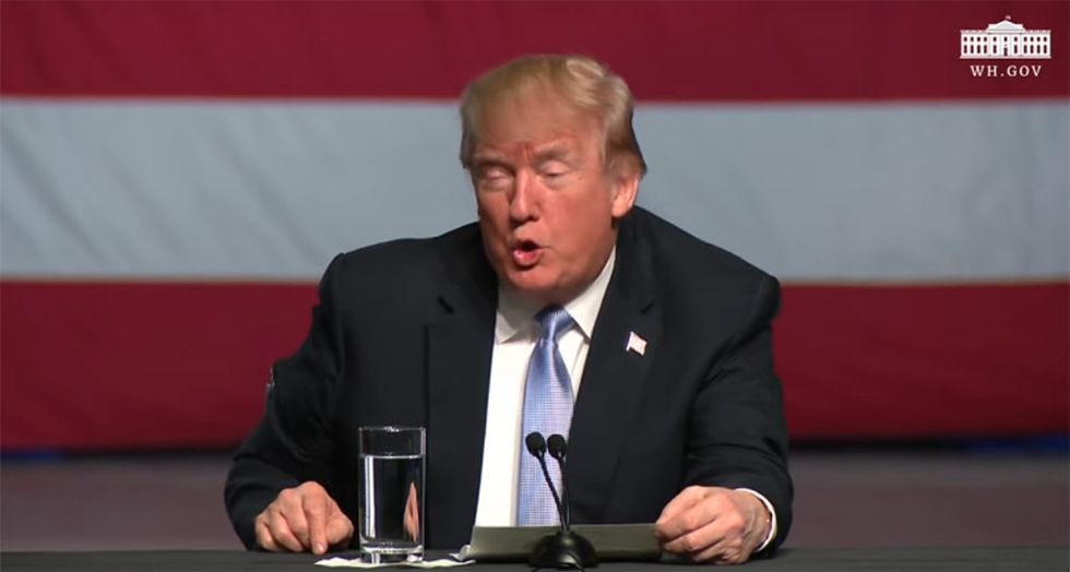 Yeah, so that was terrible. But the fun part of having a virulent racist as president -- aside from the potential for the past couple years to become a Kander and Ebb musical -- is the outright denials, dodges, and shameful soft-shoe evasions of what is obvious to anyone because it's not like Trump is subtle.