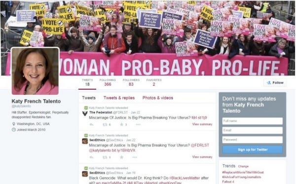 Katy Talento is a person who is going to be in charge of health-related policies of the Trump administration. God help us all.