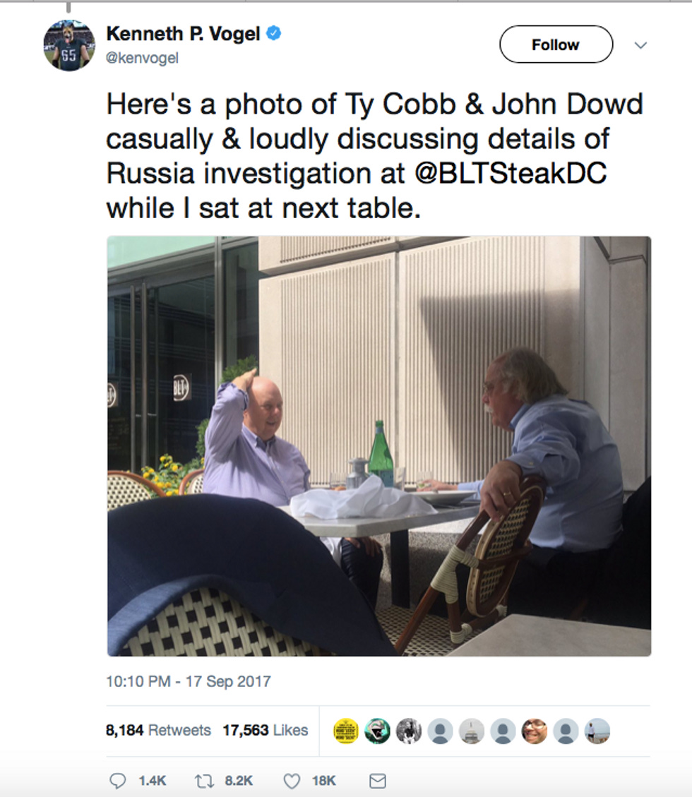 Now we're not suggesting that Dowd told Trump to rev up the slime machine -- he's no Tom Hagen. Obviously, Tom Hagen would never have been stupid enough to discuss Corleone family business in public where a New York Times reporter could hear him.