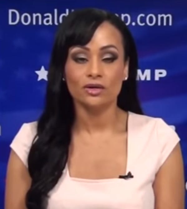 Let's bring in Donald Trump's idiot spokes-stooge Katrina Pierson, who is a verified numbnuts lame-brain moron, to tell us what the Trump campaign thinks about this:
