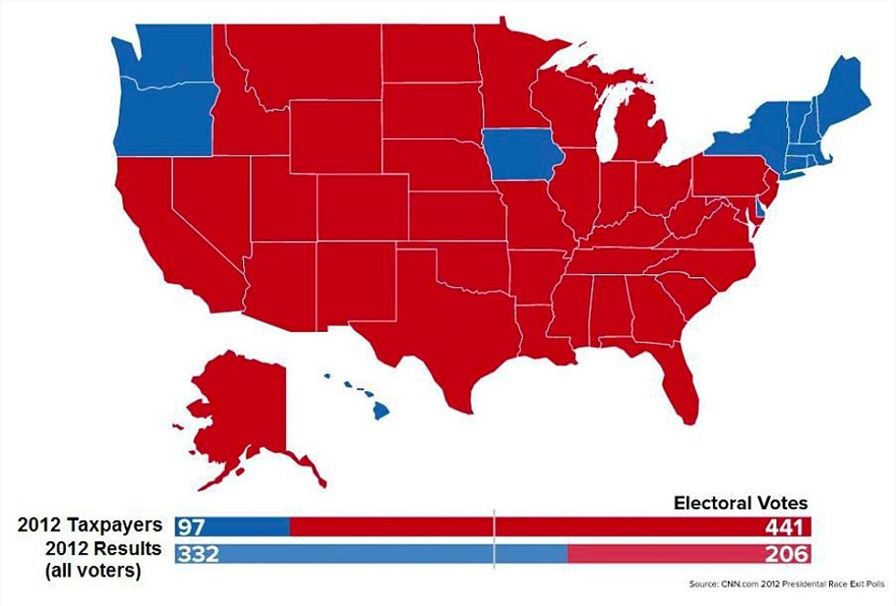 You see, Wayne Allyn Root saw a map that said if only "taxpayers" (the kind that get zero means-tested benefits) had voted, then the Republicans would have won 2012 in a LANDSLIDE. Probably this one, which is the very first and pretty much only Google result for a map like that: