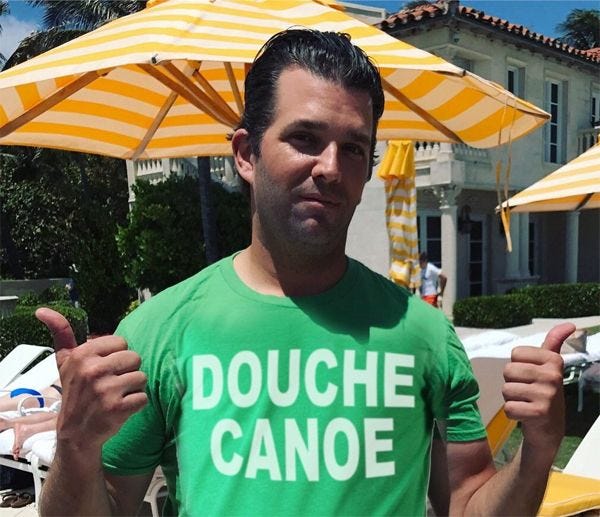 Finally, the overworked Secret Service catches a break! After running out of money to protect the large and frequently-traveling Trump family, the Secret Service had been pawning agents' snazzy watches and Ray-Bans for operating funds. But now Donald Trump Jr. will be forgoing Secret Service protection, according to "a senior administration official" who leaked the story to the New York Times. And we're completely convinced by the reason given for the decision: