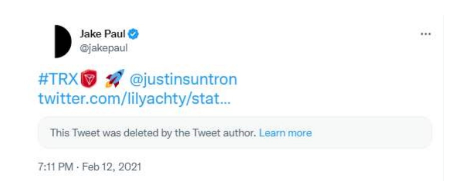 Tweeted Austin Mahone, “When $TRX hits 50 cents and $BTT hits 1 cent I’m getting a tattoo of @justinsuntron’s face.”