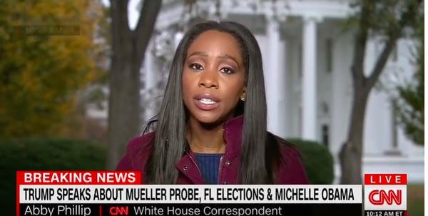During Trump's unhinged "meet and insult" this morning with the press, CNN's Abby Phillip, who's black, asked him a question that he didn't like -- probably because it was interrogative. She wondered if Trump had named Matt Whitaker his pretend "acting attorney general" because he'd seen Whitaker on TV slamming Robert Mueller and his investigation. Was the intent for Whitaker to "rein in" Mueller? Trump is lazy so it's not surprising he'd make his hires based on his DVR listing. For second interviews, applicants have to watch "Hannity" with the president. It's worse than the process at Amazon.