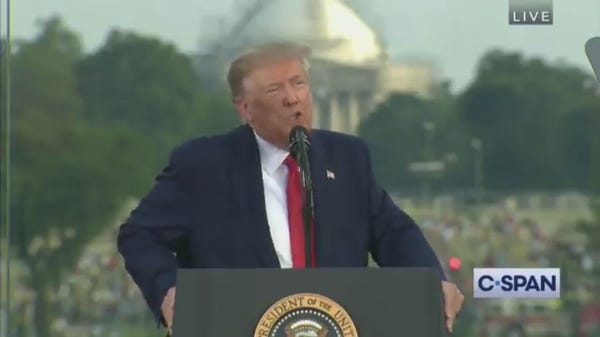 Saturday, Trump continued his readings from Travis Bickle's diary at a Salute to America event at the White House.