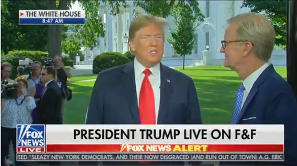 After that, Steve Doocy, ever the good and faithful Fox News servant, pointed out that before Trump and Kim met, Kim had "cleaned house" of some of his top people, and Trump excitedly alluded to the possibility that maybe Kim did even more than just fire them! (You know, because Kim kills his people, and also his family, not that Trump would want to do anything like that to his son, Junior With The Messed Up Face!) Oh, the president of the United States sounds so jealous !