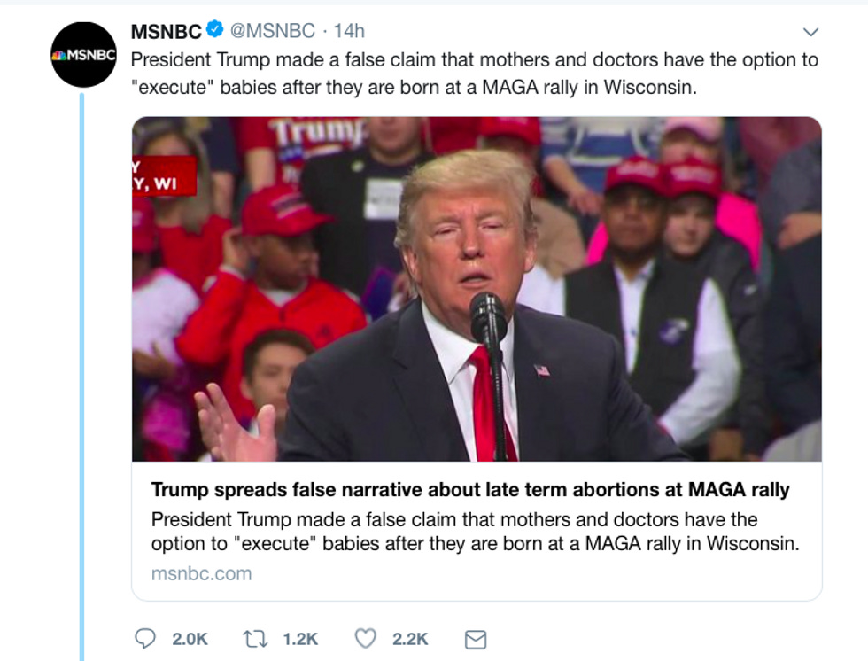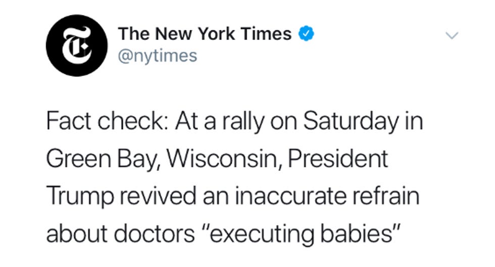 At a rally in Green Bay, Wisconsin, Trump revived an inaccurate LIE about doctors & mothers “executing babies” : … https://t.co/cYskZGaRbS