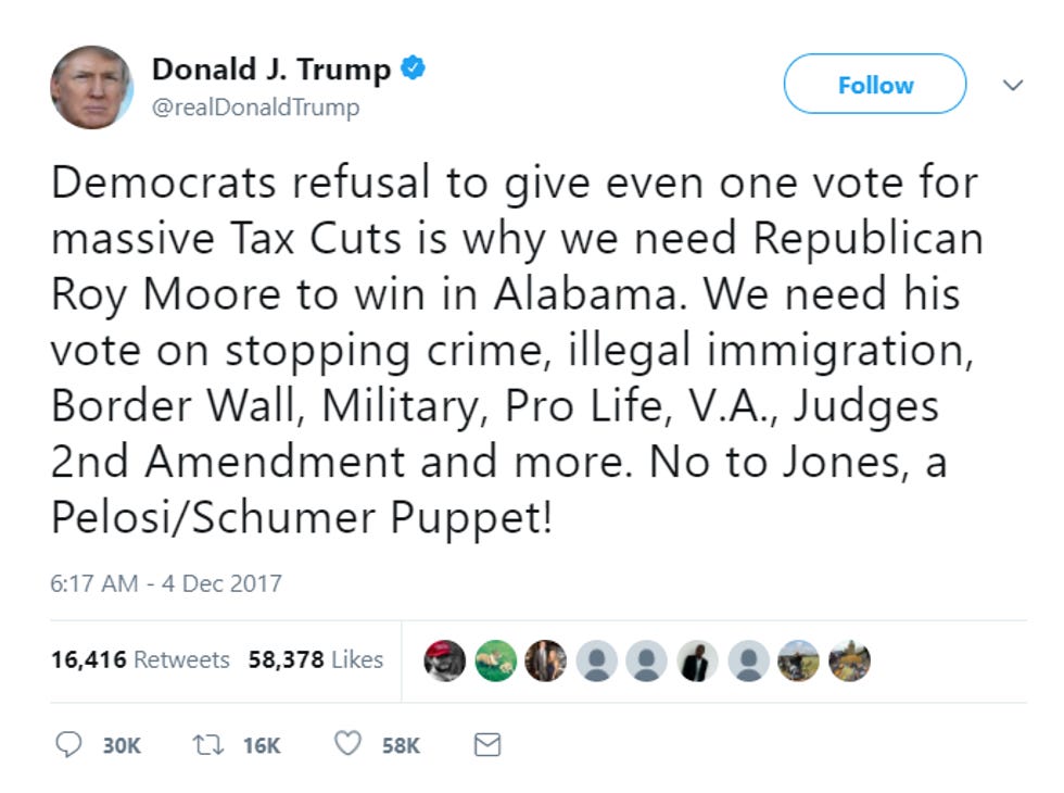 This is all just good news for Democrats, regardless of what happens in the December 10 special election. If Doug Jones ekes out a win ( DONATE HERE! ), we're one seat closer to a majority in the Senate. If Moore wins, literally every Democratic candidate in the nation can run against the god-bothering Alabama pervert and the puss-grabbing White House pervert. Most Americans have higher moral standards than the average Alabama Republican, so odds are Democrats will give the GOP the electoral beatdown it deserves in the midterms.