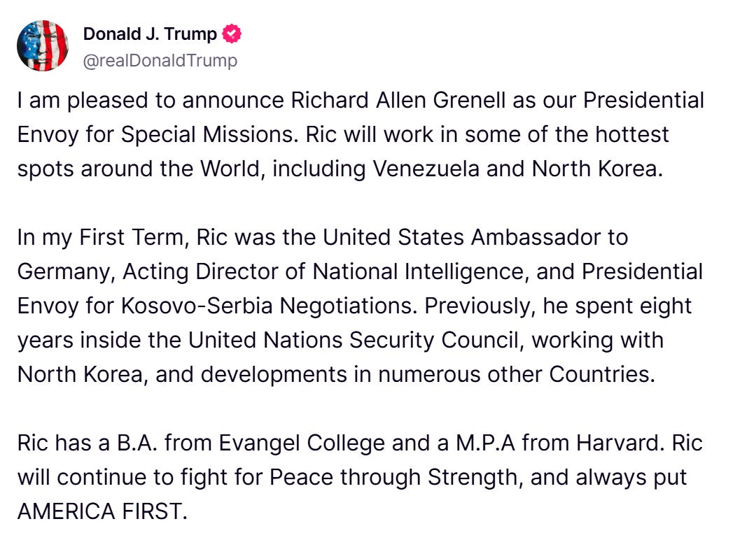Even before the 2024 election, Grenell was openly campaigning to be Secretary of State in the next Trump Reich. After the election, he was even more craven and pathetic about it, according to Politico, which reported recently on efforts by conservatives to convince Trump to name Grenell to the job: