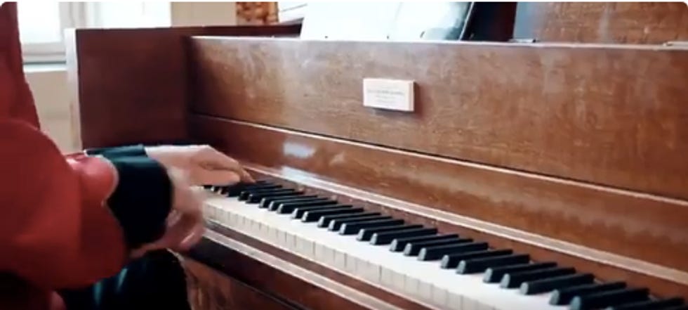 AND THEN ALL THE WOMEN GIVE HIM A STANDING OVATION. Because women love him so much. And look, ladies can do all kinds of stuff. Like this lady right here, playing the piano. Who, judging by that jacket, just might be one Kellyanne Conway.