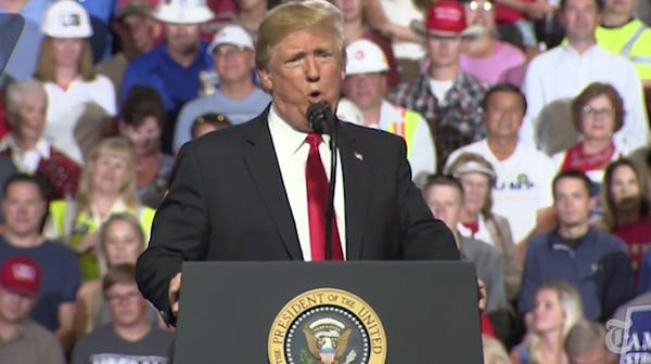 Donald Trump went to [FILL IN THE BLANK] Thursday night for a campaign rally for [PERSON WHOSE NAME WE ALREADY FORGOT BECAUSE ALL TRUMP DOES IS TALK ABOUT HIMSELF]. While there, he said [ANY ASSORTMENT OF DEMENTIA WHITE SUPREMACIST WORDS] and now all the Very Serious Journalists are like [OMG].