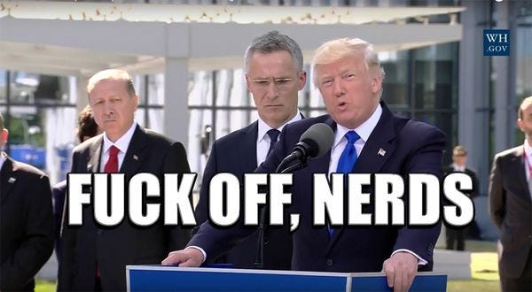 Trump went to Not America and embarrassed the shit out of of the United States by acting like a chauvinist dickhead and treating some of our most important allies like needy tenants in some shitty apartment building