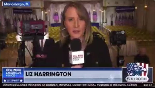But Liz Harrington, one of the Trump spokespeople who comes across like she's doing this for extra credit for Mrs. Mom, her favorite teacher at homeschool, told Steve Bannon before the speech that it would be UNCONSTITUTION for anybody to cut away from/fail to air Dear Leader's glorious announcement of his rearrival, even though it sure does seem like the loser motherfucker never left.