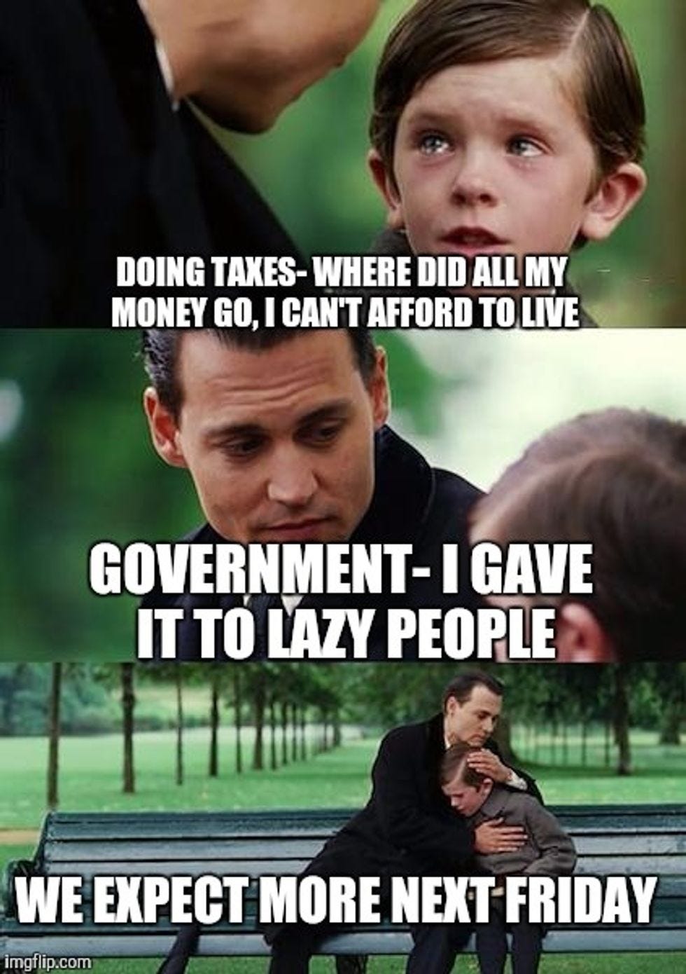 This is the kind of move that will certainly delight many of his followers — or at least those of his followers who have been convinced by years of right-wing rhetoric that "taxes" are when the government takes the money that decent (white) Americans worked hard for and hands it over to undeserving, lazy poor (nonwhite) people so they can spend it on fancy crab leg dinners. It rarely occurs to them that the taxes benefit them . Even when Social Security and Medicare are listed as categories on their pay stubs.