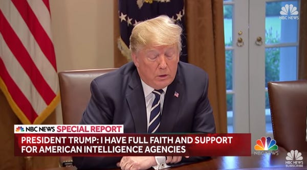 People who love America were appalled, of course, just like we were appalled to see Good Brain's "walk back" of his pathetic "performance" on Tuesday, where he didn't "walk back" shit, insisting that he had only gotten ONE WORD wrong, reasserting that he doesn'treally believe our intelligence agencies and crossing out lines in his prepared remarks so he didn't have to say he would bring election hackers to justice. Also, he wrote "NO COLUSION" on the paper, misspelling it like that because he's a very stupid man. (If you wondered why even his prepared remarks were written so poorly, the Washington Post reports that Stephen Miller was heavily involved in the writing process, so thank him.)